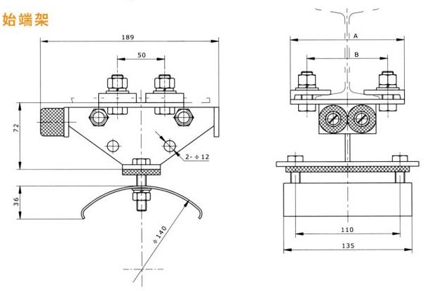 GHC系列工字鋼滑車分為中載荷型、重載荷型、和輕載荷型,因此滑車走輪為Ф80、Ф63、Ф50的三種,承載能力≤50~150kg,每類按托板層數分為單層、雙層、三層,每類中有三種形式,首端為電纜牽引車,終端為固定掛線架,中間為電纜滑車。 GHC系列工字鋼滑車安裝說明: 1、固定掛線架安裝好后,后邊應掛一擋板。 2、調整牽引頭,使小車在整個行程中不碰牽引孔的上下邊緣為好。 3、電纜長度為起重機跨度的1.2倍加8米。 4、調整牽引鋼絲繩,使其長度小于同節電纜長度,運行時由牽引鋼絲繩受力。 5、當電纜直徑不等時,電纜夾間應墊以軟橡皮, 使其外徑基本相同,以便將電纜夾緊。 6、布電纜時,應考慮兩面電纜托板受力均衡。 7、當電纜滑車為二層,三層時,要求相同。 8、滑車裝置上的雙墊圈為調整墊圈,當導軌不合適時,把墊圈放在固定板的內側,以調整軌距的寬窄,出廠時按導軌為I 100*68*4.5、I 120*74*5、I140*80*5、I 160*88*6制造。非標滑車按圖紙加工制作。 GHC系列工字鋼滑車規格參數: