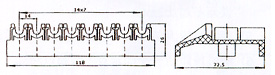 一、概述 JDHR型滑線為單極制作,多極組裝。適宜于密集型安裝,如電動單軌小車自動生產(chǎn)線,游樂線等。其具有以下主要特征: 1.密集組合 極間距小,任意組合。目前已應(yīng)用最大組臺數(shù)為36根。 2.敷設(shè)方便 整體組裝,敷設(shè)靈活,可懸掛安裝、附著墻壁安裝,水平安裝、垂直安裝或按需隨意安裝。 3.彎曲靈活 彎曲半徑可達R500mm,并可隨軌道任意彎曲,無須特意制成弧形。 二、主要基本參數(shù)