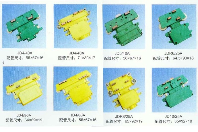 大三極、雙電刷、普通轉(zhuǎn)彎、轉(zhuǎn)彎、大頭雙電刷、高低腳轉(zhuǎn)彎、高低腳、多極滑觸線集電器普通型四極、高低腳四極、普通型、普四極ZJG、小雙電刷、五極、四極、雙蓋雙孔、六極轉(zhuǎn)彎、小七極管、大七極管、八極轉(zhuǎn)彎、十極管、十六極、防塵雙電刷、大四極、四線插座多極滑觸線集電器。